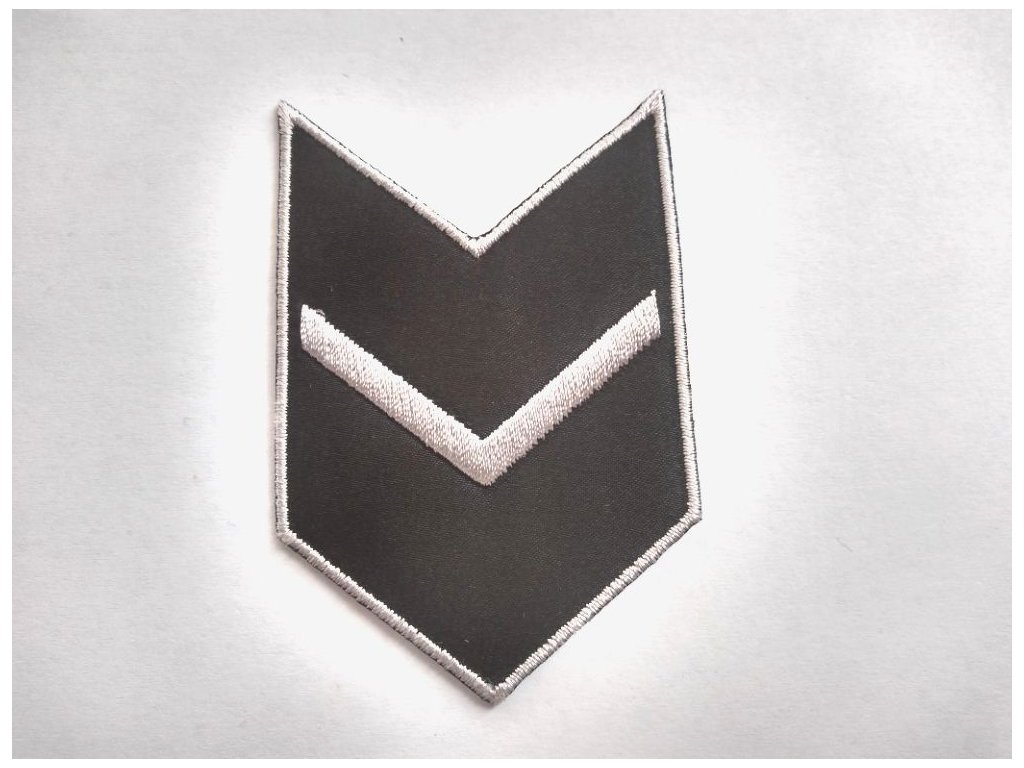 Snadná aplikace: Nášivka je připravena k pevnému přišití na oděv, což zaručuje, že zůstane na svém místě i v případě fyzického střetu nebo náročného pohybu.