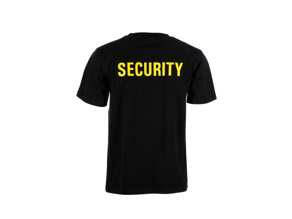 - Tričko s krátkým rukávem se žlutým nápisem SECURITY na zádech